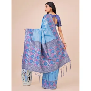 Women’s Lichi Silk Printed Saree With Unstitched Blouse 5.5Mtr