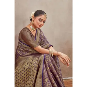 Women’s Silk Blend Floral Printed Saree With Unstitched Blouse